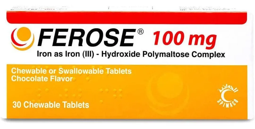 كبسولات فِروز 100 ملجم لعلاج الأنيميا ونقص الحديد بالجسم تركيبة تحتوي كبسولات فِروز حديد 100 ملجم على الحديد الفروزين، وهو نوع من المعادن الضرورية لصحة الجسم. يعمل الحديد على تشكيل الهيموجلوبين، الذي ينقل الأكسجين في الدم إلى جميع أنحاء الجسم. يحتوي كل كبسولة على 100 ملجم من الحديد الفروزين، وهو جرعة فعالة وآمنة لتلبية احتياجات الجسم من الحديد.